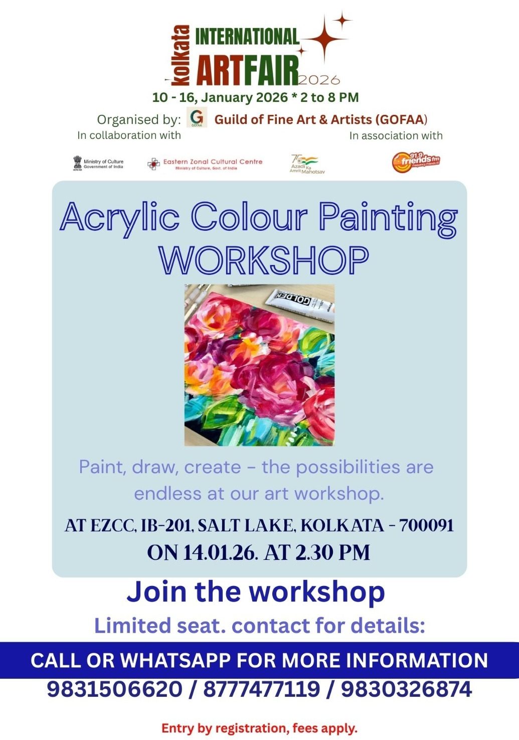 This workshop is a celebration of creativity and learning under the guidance of eminent artists. We look forward to your enthusiastic participation and a joyful artistic experience at Kolkata International Art Fair 2026!