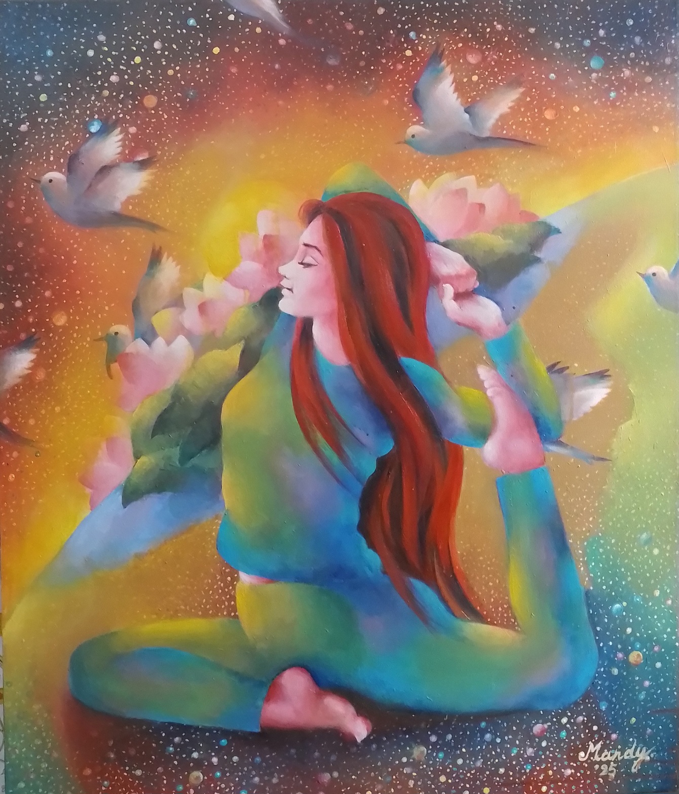 My art explores the spiritual growth of a human being in relation to the world , nature and the universe. My paintings have portraiture and figurative images and also the natural beauty of earth and outer space. Impressionism , a semi academic realism and symbolism are often combined in my artwork.